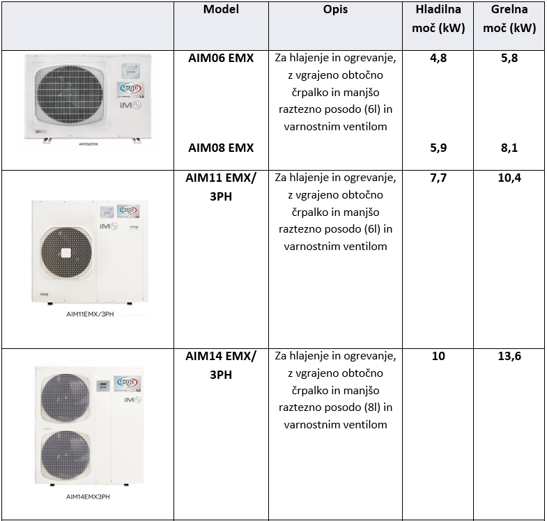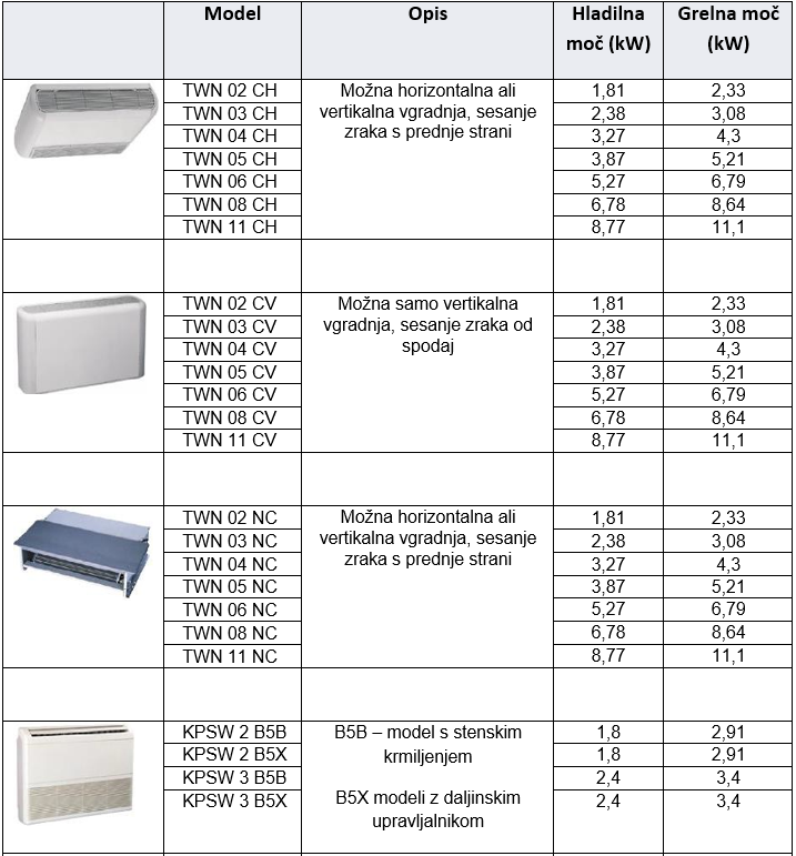 - Samo hlajenje ali hlajenje+ogrevanje